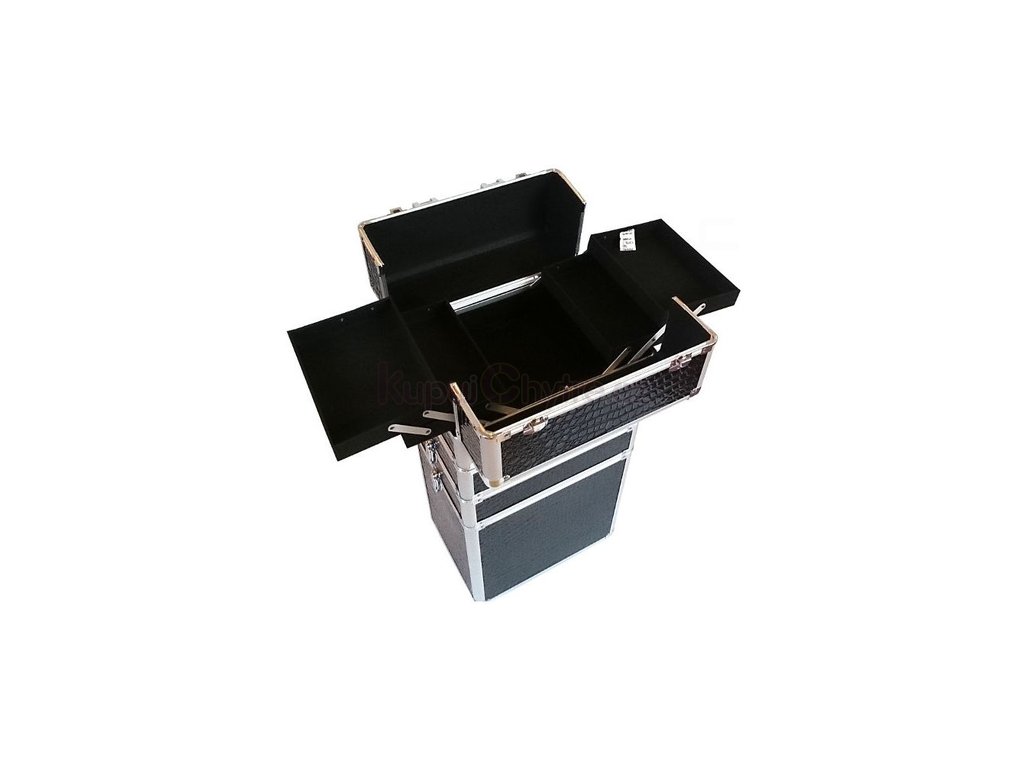 Velký praktický kosmetický kufr z pevného materiálu, zesílené rohy proti poničení, vnitřní povrch je potažen látkou. Kufřík má posuvné zásuvky a je uzamykatelný. Ve spodní části je místo pro uložení nehtového vybavení jako je Uv lampa nebo bruska. Posuvné zásuvky lze vyplnit gely, zdobením nebo jinými doplňky. Ideální na cesty.