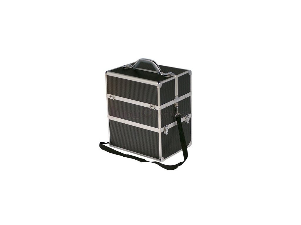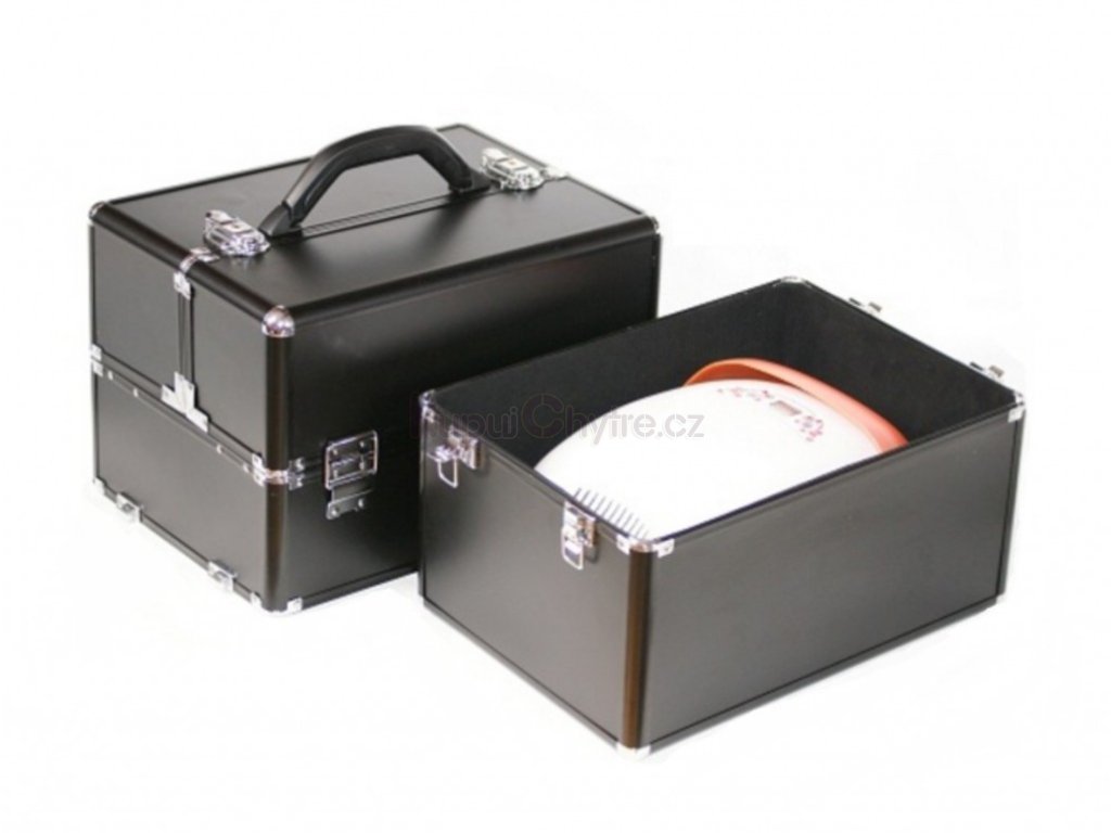 Dvojitý kosmetický kufřík z lehkého pevného materiálu (hliníku), zesílené rohy proti poničení, vnitřní povrch je potažen látkou. Kufřík má posuvné zásuvky a je uzamykatelný. Ve spodní části je místo pro uložení nehtového vybavení jako je UV lampa a bruska na nehty. Posuvné zásuvky lze vyplnit gely, zdobením nebo jinými doplňky. Ideální na cesty.
