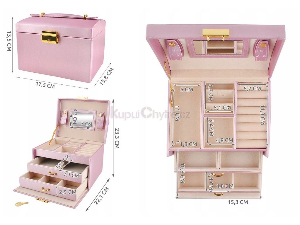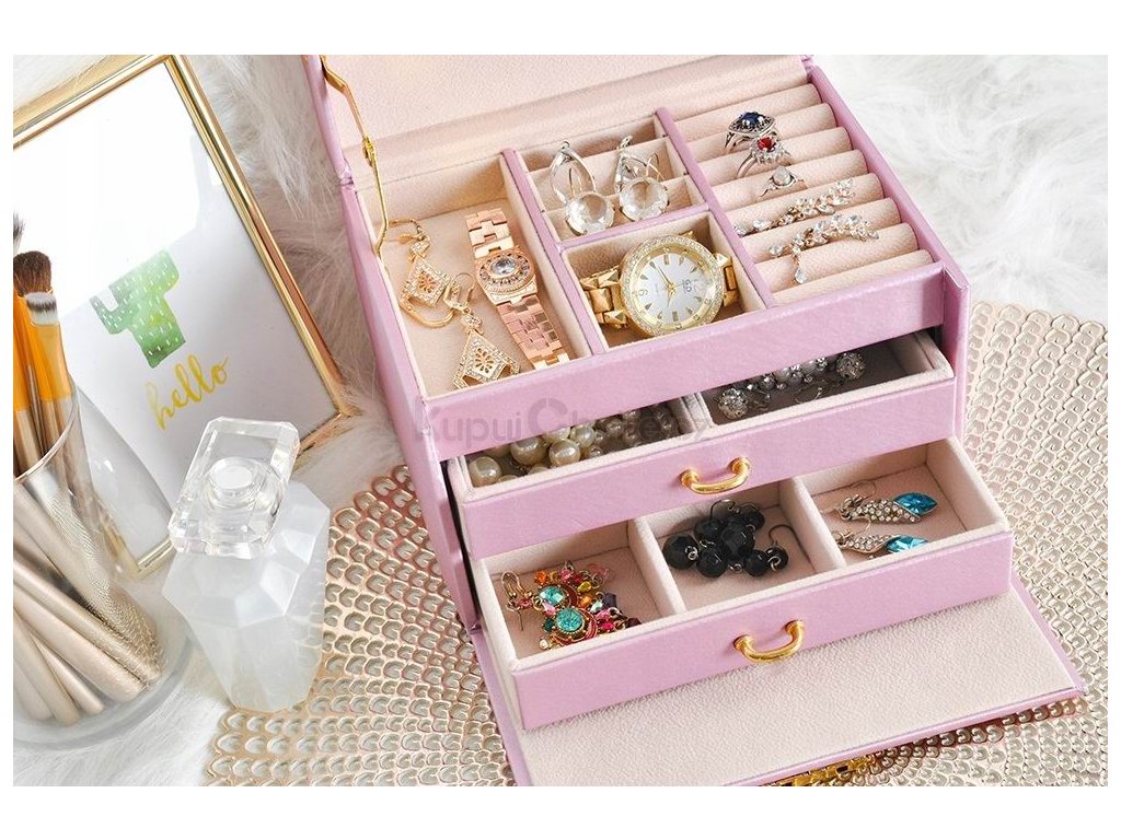 Luxusní a nadčasová šperkovnice nabízí celou řadu možností ukládání vašich cenností. Je ideální pro ukládání hodinek, náhrdelníků, náušnic, náramků, prstenů a dalších druhů šperků a bižuterie. Díky své praktičnosti a přehlednosti budete mít své doplňky vždy dokonale uložené a organizované a jejich čištění a přenášení bude maximálně pohodlné.