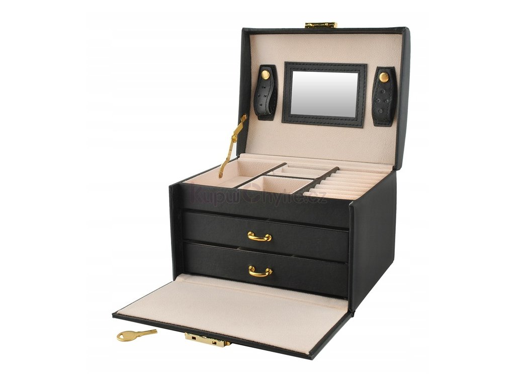 Šperkovnice se zrcadlem na klíček (černá) - ZMÁČKNUTÝ ROH