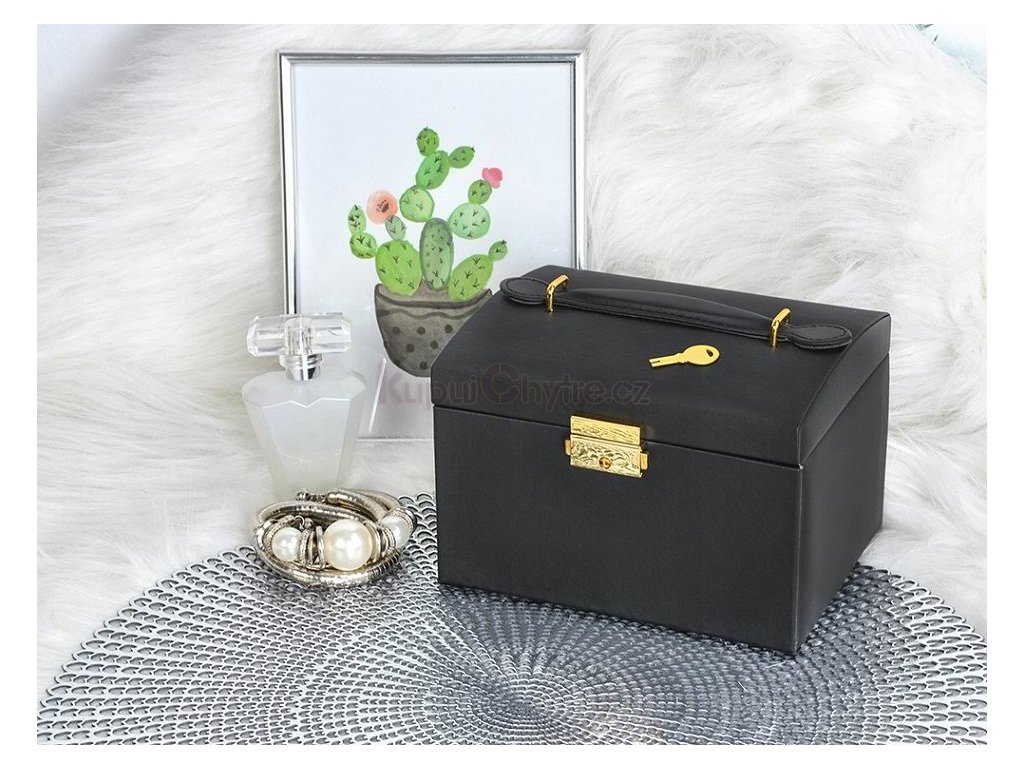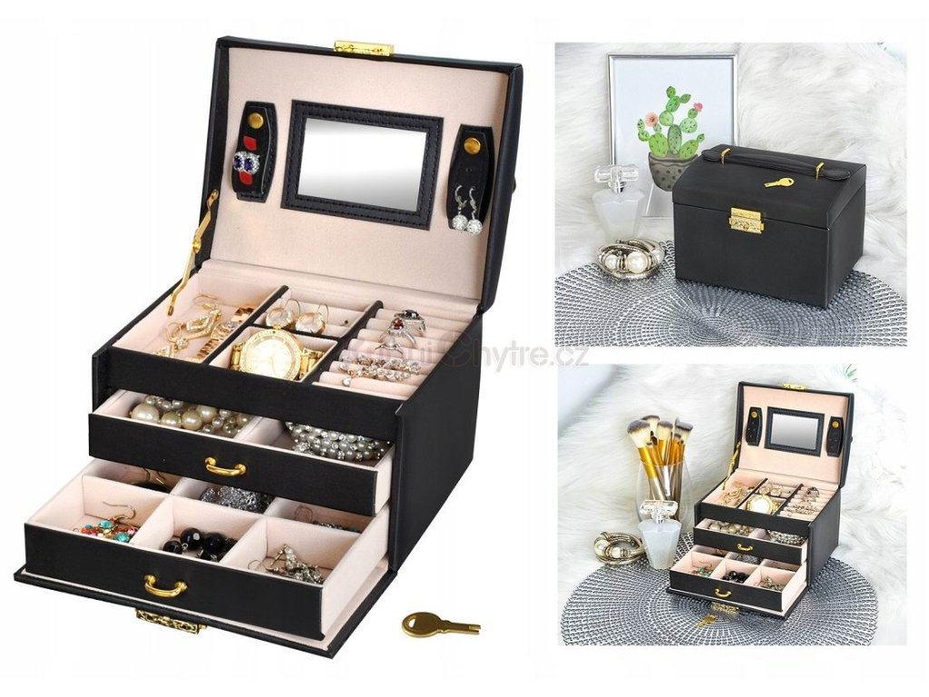 Kosmetický kufřík - šperkovnice (černá) - ZMÁČKNUTÝ ROH