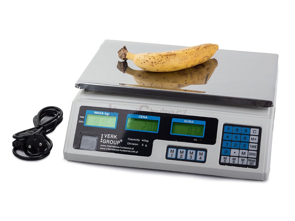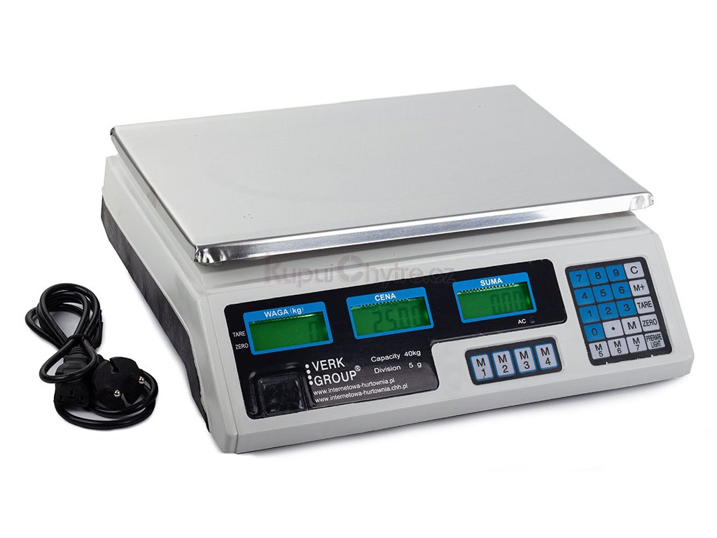 Elektronická kalkulační váha 40 kg / přesnost 5 g s pamětí cen
